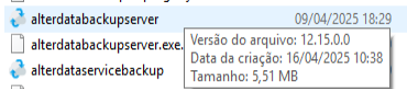 Pra conferir qual a versão instalada na sua máquina, é só entrar na pasta do Backup-Service e parar o cursor do mouse sobre o aplicativo: alterdatabackupserver: