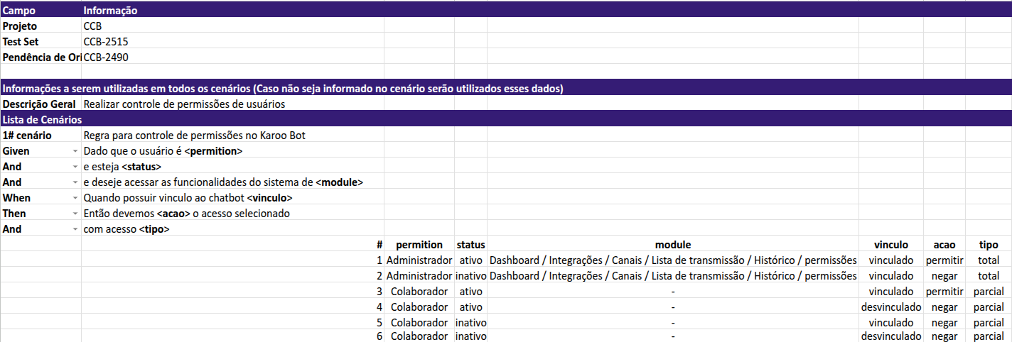 - Ao cadastrar uma permissão pela aba chatbot e acessar a conta, a permissão é concedida corretamente;