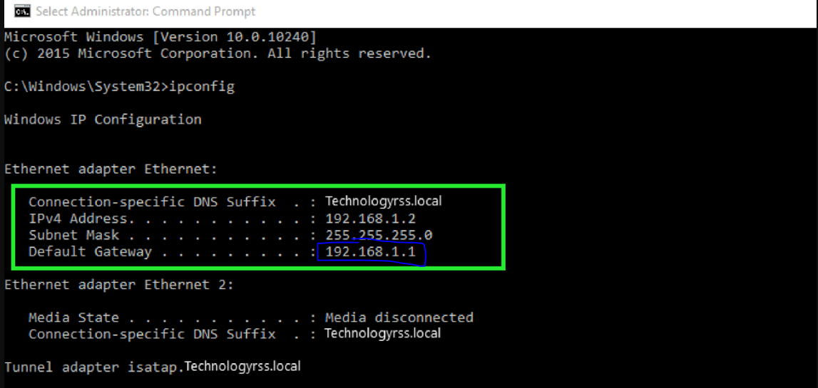 ipconfig> Gateway Padrão. Jogue o IP no navegador.